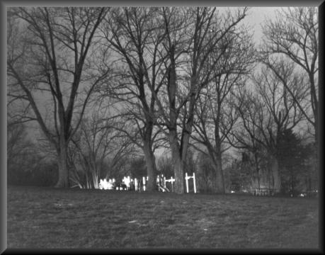 Taken at midnight at Devou Park in Northern Kentucky, this playground full of children's jungle gyms appears to be a graveyard full of crosses. Makes you think about how simple life can be.